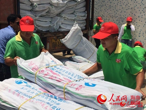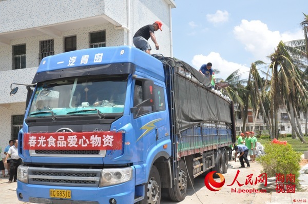 人民網海南視窗文昌7月23日電(記者毛雷 實習生喻晨)超強臺風“威馬遜”登陸海南第5日,人民網海南視窗聯合海南春光食品前往受災最為嚴重的文昌市翁田鎮,為災區送去急需的14萬平方米防水布料。