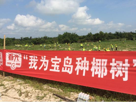 5月18日上午,在文昌市東郊鎮、龍樓鎮的200多畝閑置土地上,我司發起了“我為寶島種椰樹”公益綠化植樹活動,近千名春光員工將2萬棵椰苗義務栽種在了椰鄉大地上,在為家鄉添綠的同時,也為當地農戶無償構筑起了未來椰子產業發展的基石。